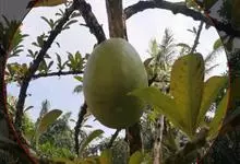 铁西瓜为紫葳科、葫芦树属的常绿小乔木,高5~18米,为典型的热带雨林“老茎生花”植物。其花、果单生于小枝或老茎上;花冠钟形,淡绿黄色,具褐色脉纹,春夏开花。全部>>