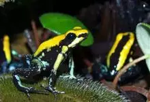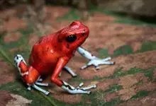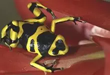 箭毒蛙,是无尾目箭毒蛙科箭毒蛙属动物。箭毒蛙体形较小,一般长1-6厘米,身上的颜色多为黑色与红色、黄色、橙色、绿色等;皮肤内有粘液分泌腺,能使皮肤随时保持湿润;四肢布满鳞纹;足间无蹼。…全部>>