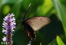蓝凤蝶,Papilio protenor Cramer,凤蝶科凤蝶属的一种昆虫。翅展95~120mm。翅黑色,有靛蓝色天鹅绒光泽。雄蝶后翅正面前缘有黄白色斑纹,…全部>>
