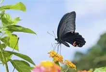 玉斑凤蝶Papilio helenus 别名白纹凤蝶,是凤蝶科凤蝶属美凤蝶亚属大型种类。雌雄同型;体翅皆黑色,后翅正面中室外有3个并列的白色斑,亚外缘有1列模糊的新月形红色斑,…全部>>