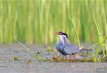 北极燕鸥是属于燕鸥属的一种海鸟。体型中等,体长33-39厘米,翼展76-85厘米。其羽毛主要呈灰色与白色,喙和两脚呈红色,前额呈白色,头顶和颈背呈黑色,腮帮子呈白色。其灰色翅膀为305毫米,肩羽带棕…全部>>