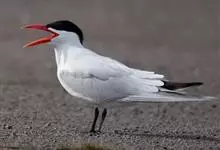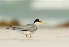 鸥嘴噪鸥,中型水禽,体长31~39厘米。夏羽额、头顶、枕和头的两侧从眼和耳羽以上黑色。背、肩、腰和翅上覆羽珠灰色。后颈、尾上覆羽和尾白色,中央一对尾羽珠灰色。尾呈深叉状。冬羽头白色,头顶和枕缀有灰色…全部>>