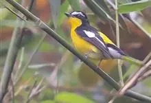 白眉姬鹟是小型鸟类,体长11-14厘米。雄鸟上体大部黑色,眉纹白色,在黑色的头上极为醒目。腰鲜黄色,两翅和尾黑色,翅上具白斑。下体鲜黄色。雌鸟上体大部橄榄绿色。腰鲜黄色,翅上亦具白斑。下体淡黄绿色。…全部>>