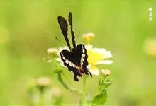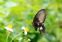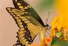 金凤蝶,是鳞翅目凤蝶科凤蝶属动物。金凤蝶为中型凤蝶,翅展70-84毫米,翅背面底色黑褐色,翅脉黑色,翅室具黄斑;前翅背面基部呈暗黄色,亚外缘为黑色,内具一列小黄斑;后翅背面亚外缘区具黑宽边,…全部>>