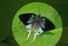 光明女神闪蝶:是鳞翅目、闪蝶科、闪蝶属的昆虫。前足相当退化,短小无爪。前翅R脉5条,常共柄。卵半圆球形。幼虫头上有突起,体节上有枝刺,腹足趾钩1至3序中列式。蛹为垂蛹。雄闪蝶的翅面有绚丽的金属般光泽,…全部>>