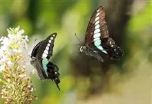 青带凤蝶Graphium sarpedon ,又名青凤蝶,是最普遍的中型凤蝶,飞行速度很快。青带凤蝶的翅膀中央有许多浅蓝色的斑点,很整齐地排列成一条直线。这些斑点由上而下逐渐变大,就像一条青色的带子。全部>>