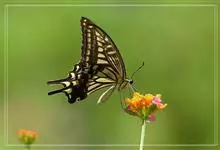 玉带凤蝶是鳞翅目凤蝶科凤蝶属昆虫,又称白带凤蝶、黑凤蝶、缟凤蝶、梁山伯凤蝶。雄蝶前翅外缘、后翅中央有7个大型黄白斑,排列成带。老熟幼虫深绿色,头部黄褐色,后胸前缘有1条齿状的黑色线状横纹,…全部>>