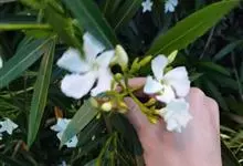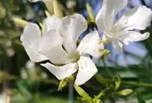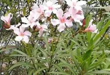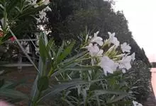 白花夹竹桃是夹竹桃科、夹竹桃属植物夹竹桃的栽培品种。常绿直立大灌木,枝条灰绿色;嫩枝条具稜,被微毛,老时毛脱落。叶3-4枚轮生,下枝为对生,叶面深绿,叶背浅绿色;侧脉纤细平行与中脉成直角;叶柄扁平,…全部>>