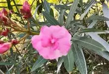 夹竹桃,又名红花夹竹桃、欧洲夹竹桃,是夹竹桃科夹竹桃属的一种常绿直立大灌木,枝条灰绿色,含水液。叶披针形,3叶轮生。聚伞花序顶生,花冠粉红至深红色,花冠漏斗状,有特殊香味。蓇葖果,圆柱形。种子长圆形,…全部>>