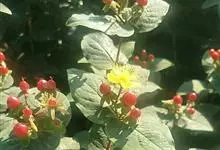 红果金丝桃,园艺栽培品种,属于被子植物门木兰纲金虎尾目金丝桃科金丝桃属。学名:Hypericum × inodorum ‘Excellent Flair’常绿灌木,高1.2米。单叶对生,无柄,椭圆形,…全部>>