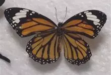 黑脉金斑蝶:翅阔8.6-12.4厘米。雄蝶较雌蝶为大。成年蝶颜色鲜艳,翅膀上有显眼的橙色及黑色斑纹,周围是宽阔的黑色边框,布有许多白色斑点。这种引人注目的着色是对捕食者的视觉警告,表示这个物种有毒;…全部>>