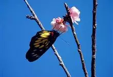 报喜斑粉蝶是粉蝶科斑粉蝶属的一种动物,又名红肩粉蝶、藤粉蝶等。幼虫群集性很强,从同一卵块孵化出的幼虫,幼龄期全部群集在一起取食,高龄幼虫常分散成小群。幼虫群集危害叶片,造成秃枝,严重者可将树吃成光杆,…全部>>