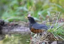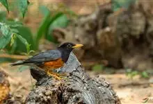 黑胸鸫属中型鸟类,体长20-30厘米。雄鸟整个头、颈、胸黑色,其余上体暗灰色,下体橙棕色,极为醒目。嘴、脚蜡黄色。雌鸟上体橄榄褐色,颏、喉白色,上胸橄榄褐色具黑色斑点,其余与雄鸟相似。…全部>>