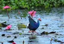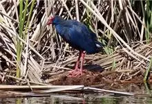 紫水鸡是秧鸡科紫水鸡属鸟类。下辖12个亚种,中国为云南亚种。体长40-45厘米,体羽大多为紫蓝色,翅表面和胸蓝绿色;尾下覆羽白色;嘴红色,粗大并与橙红色额甲相接;额甲宽阔,后缘呈截平状;雌雄鸟相似,…全部>>