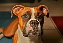 拳师犬是食肉目犬科犬属哺乳动物,又称德国拳师犬。眼大小中等,琥珀色,眼眶为暗色;鼻子宽,黑色,鼻孔大,鼻子上有一条线;下颚比上颚突出,稍微向上弯曲;耳薄,耳根高,休息时耳朵平躺在头上,…全部>>