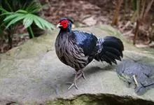 黑鹇是鸡形目雉科目鹇属鸟类,又称鸬雉、黑鸡。体型中等。雄鸟上体黑褐色,背羽具黑紫色金属光泽;头顶具黑羽冠;脸部裸皮呈红色,散生稀疏黑色纤羽;尾长而侧扁,中央两对尾羽红褐色,…全部>>