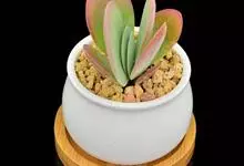 唐印为景天科伽蓝菜属的多年生肉质草本植物。植株中型,株高50厘米,宽20厘米,多分枝;叶片肉质,对生,卵形,全缘,先端钝圆,叶片淡绿色至灰绿色,表面被有厚厚的白粉,光照充足时,叶缘呈红色;圆锥花序,…全部>>