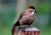 白颊噪鹛是雀形目噪鹛科噪鹛属鸟类,又称土画眉、小画眉、小噪鹃。成鸟额至头顶栗褐色,长眉纹、眼先和颊纹棕白色,眼后至耳羽深褐色,…全部>>