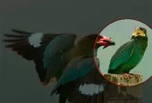 黑眉拟啄木鸟,为须䴕科、拟啄木鸟属的小型鸟类,体长20-25厘米,外形和金喉拟啄木鸟非常相似,但具粗著的黑色眉纹,头侧和耳覆羽以及下喉蓝色而不为银灰色,前颈两侧各有一块鲜红色斑。全部>>