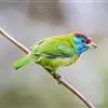 蓝喉拟啄木鸟,是须鴷科、拟啄木鸟属的鸟类。蓝喉拟啄木鸟为小型鸟类,体长20-23厘米。前额至头顶鲜红色,其上有一宽阔的黑色横带,将此红色分为前后二块;头侧、颏、喉蓝色,下喉两侧各具一红色点斑。…全部>>
