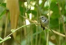 黑眉苇莺:体重7-11克,体长11-13厘米。上体橄榄棕褐色;眉纹淡黄色,杂有明显黑褐色纵纹;第2枚初级飞羽较第6枚短;下体白色,两胁暗棕色。虹膜暗褐色;嘴黑褐色,下嘴基淡褐色;脚暗褐色。…全部>>