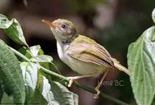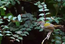 普通缝叶莺,是雀形目鹅科莺亚科缝叶莺属一种。体长10-14厘米,体重7-10克,雄鸟前额棕红,头顶至枕棕橄榄褐,上体橄榄绿染黄,飞羽及尾羽暗褐;繁殖期雄鸟的中央尾羽特形延长,下体淡皮黄白色。…全部>>