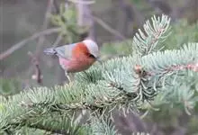 凤头雀莺:小型鸟类。体长9-10厘米,雄鸟呈毛茸茸的紫色和绛紫色,顶冠淡紫灰色,额及凤头白色,尾全蓝。雌鸟喉及上胸白,至臀部渐变成淡紫色,耳羽灰,…全部>>