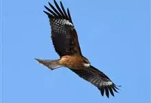 黑鸢:是鹰科、鸢属的一种中型猛禽,共有5个亚种。体长54-69厘米。上体暗褐色,下体棕褐色,均具黑褐色羽干纹,尾较长,呈叉状,具宽度相等的黑色和褐色相间排列的横斑;飞翔时翼下左右各有一块大的白斑。…全部>>