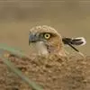 短趾雕:体长62-70厘米,体重1.2-2.3千克。它们的颔、颈和胸部上方呈浅棕色。头部浑圆像猫头鹰般,眼睛呈鲜黄色。身体沉重,上体灰褐,下体白而具深色纵纹,喉及胸单一褐色,腹部具不明显的横斑,…全部>>
