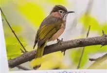 栗背短脚鹎,体长18-22厘米。上体栗褐,头顶和羽冠黑色。背栗色、翅和尾暗褐色具白色或灰白色羽缘。颏、喉白色,胸和两胁灰白色,腹中央和尾下覆羽白色。…全部>>