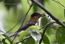 栗背短脚鹎,体长18-22厘米。上体栗褐,头顶和羽冠黑色。背栗色、翅和尾暗褐色具白色或灰白色羽缘。颏、喉白色,胸和两胁灰白色,腹中央和尾下覆羽白色。…全部>>