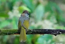 灰短脚鹎,体长19-22厘米。头顶和短的羽冠黑色,上体暗灰色,耳羽灰褐色,两翅表面橄榄绿黄色。大覆羽和内侧飞羽外翈橄榄黄色,在翅上形成大块绿黄色斑,在灰色的上体极为醒目。尾暗褐色具橄榄绿色羽缘。…全部>>