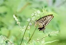 玉带凤蝶是鳞翅目凤蝶科凤蝶属昆虫,又称白带凤蝶、黑凤蝶、缟凤蝶、梁山伯凤蝶。雄蝶前翅外缘、后翅中央有7个大型黄白斑,排列成带。老熟幼虫深绿色,头部黄褐色,后胸前缘有1条齿状的黑色线状横纹,…全部>>