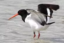 蛎鹬是鸻形目蛎鹬科蛎鹬属。蛎鹬的成鸟夏羽头、颈、胸和上体大部分为乌亮的黑色,腰到尾上覆羽白色,尾羽基部白色,端部黑色;翼上黑色,具有白横斑;下体胸部以下白色,翼下白色带黑缘;虹膜红色,啄和眼圈橘色,…全部>>