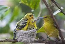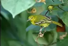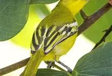 黑翅雀鹎:体重14-19克,体长11.5-16厘米。是树栖性绿色小鸟,外形与叶鹎相似,下体黄色。鸟喙直,翼长而尖,总体羽毛是绿色和黄色相结合,翼上具两道明显近白色横纹,翼近黑而羽缘白。…全部>>