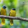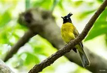 黑冠黄鹎:体长18-21厘米,是一种中等体型偏黄色鹎。整个头、颈、颏、喉黑色,头顶有显著直立的羽冠,黑色,上体褐橄榄黄绿色,下体橄榄黄色。虹膜偏红;嘴及脚黑色。…全部>>