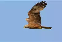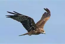 黑鸢:是鹰科、鸢属的一种中型猛禽,共有5个亚种。体长54-69厘米。上体暗褐色,下体棕褐色,均具黑褐色羽干纹,尾较长,呈叉状,具宽度相等的黑色和褐色相间排列的横斑;飞翔时翼下左右各有一块大的白斑。…全部>>