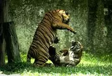 孟加拉虎是肉食目猫科豹属哺乳动物,又名印支虎。头圆、耳短、额阔,额部有数条黑色横纹,额正中可见连串纵纹;唇侧长有长须,上下颌两侧前端长有利牙;胸阔腰细、四肢粗短、尾长、强壮有力。体毛呈黄色,带有条斑,…全部>>