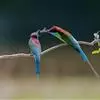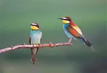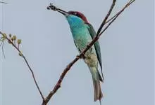 蓝颊蜂虎:是蜂虎科、蜂虎属的鸟类,共有2个亚种。体长27-33厘米,翼展46-49厘米,体重38-50克。嘴形细长而下弯,先端尖,…全部>>