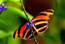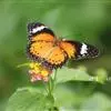 虎斑蝶,Danaus genutia ,是斑蝶属的一种,常见于湿地公园内。雄性虎斑蝶经常伏于吊裙草 上吸食汁液,以制造吸引异性的香气。虎斑蝶翅膀腹面鲜橙色,翅脉和翅边缘黑色,边缘上有两行小白点,…全部>>