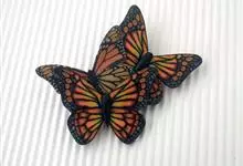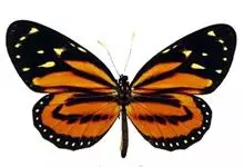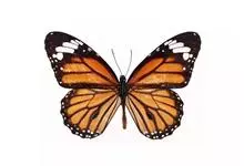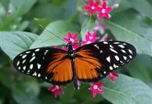 黑脉金斑蝶:翅阔8.6-12.4厘米。雄蝶较雌蝶为大。成年蝶颜色鲜艳,翅膀上有显眼的橙色及黑色斑纹,周围是宽阔的黑色边框,布有许多白色斑点。这种引人注目的着色是对捕食者的视觉警告,表示这个物种有毒;…全部>>