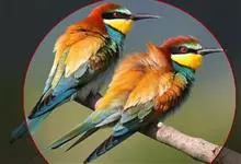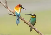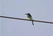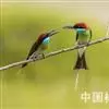 栗喉蜂虎是蜂虎科蜂虎属的鸟类。有热带鸟类羽毛艳丽的特征:喉部是栗红色的,黑色的过眼纹,翅膀和背部是绿色的,尾翼是蓝色的,飞行时翅膀下面的羽毛是橙黄色的,在阳光的照射下,它们全身闪烁着金属般的艳丽光泽,…全部>>