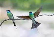 蓝喉蜂虎中型鸟类,体长26~28厘米。头顶至上背栗红色或巧克力色,过眼线黑色,腰和尾蓝色,翼蓝绿色,腰及长尾浅蓝,中央尾羽延长成针状,明显突出于外。颏喉蓝色,其余下体和两翅绿色。嘴细长而尖,黑色,…全部>>