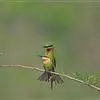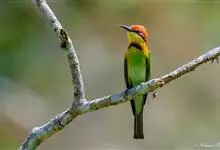 绿喉蜂虎是佛法僧目、蜂虎科的小型鸟类,共有9个亚种。身长22-25厘米,翼展29-30厘米,体重15-20克。喉绿色,额部、头顶至上背为锈红色,其余上体均为亮绿色。中央尾羽延长且端段狭细,…全部>>