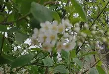 稠李是蔷薇科、李属的乔木。株高达15米;幼枝被绒毛,冬芽无毛或鳞片边缘有睫毛;叶椭圆形、长圆形或长圆状倒卵形,基部圆或宽楔形,有不规则锐锯齿,花序梗和花梗无毛,萼筒钟状,萼片三角状卵形,花瓣白色,…全部>>