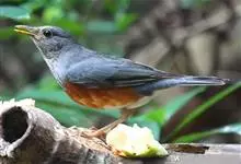 灰背鸫,又名灰乌鸫,是雀形目鸫科鸫属鸟类。雄鸟额及整个上体为橄榄灰色,眼先黑色,头侧微沾棕褐色,耳羽黑褐色杂以细白羽干纹;飞羽和尾羽褐黑色,外翈缀有灰蓝色;下体颏、喉灰白色具黑褐色羽干纹,胸淡灰色,…全部>>