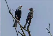 白头鹎是雀形目鹎科鹎属鸟类,别名有白头翁、白头婆、淡臀鹎、中国鹎等。喙黑色,嘴峰稍曲,端部下曲,具近端缺刻;鼻孔裸露,具瓣膜和嘴须;额至头顶黑色,虹膜褐色,眼至后枕白色,耳羽后端具一小白斑,…全部>>
