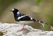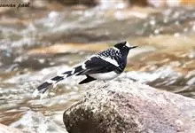 斑背燕尾是鹟科、燕尾属中型鸟类,体长24-25厘米。额至头顶前部白色,其余头、颏、喉、胸黑色,后颈有一白领,背黑色具圆形白色斑点,腰白色,两翅黑色具白色翅斑,尾呈深叉状,黑色、具白色端斑。…全部>>
