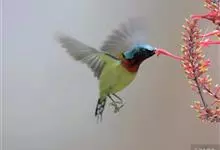 黄腰太阳鸟共有16个亚种,小型鸟类,体长10-15厘米。嘴细长而向下弯曲,雄鸟额和头顶前部金属绿色,头顶后部橄榄褐色。其余头、颈、背、肩、颏、喉、胸以及翅上中覆羽和小覆羽概为红色,腰黄色,…全部>>