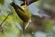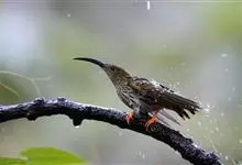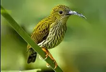 纹背捕蛛鸟:为太阳鸟科捕蛛鸟属的鸟类。是太阳鸟科中体型较大的一种,体重25-45克,体长160-210毫米。嘴粗长而尖且向下弯曲。上体橄榄黄色具黑色中央斑纹。下体淡黄白色满布黑色纵纹,尾具黑色次端斑。…全部>>